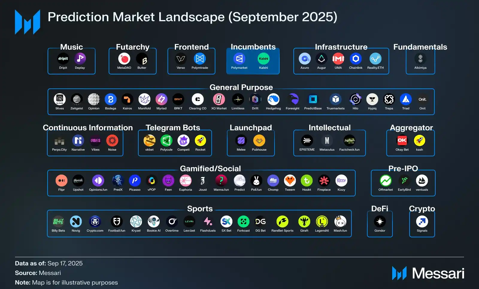• 資本湧入: ICE 投入$2B 入股Polymarket,刷新加密融資史上最大金額記錄,推升估值到$9B;Kalshi 更是在近期以$11B 估值籌集了$1B;Solana、BNB Chain 等也紛紛開始扶持各自公鏈的預測產品。