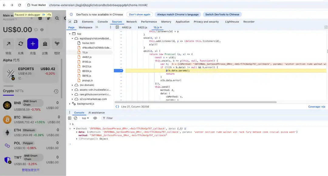 2. 立即匯出私鑰/助記詞並卸載 Trust Wallet 擴展錢包。