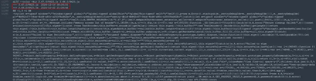 Upon receiving the intelligence, the SlowMist security team promptly conducted an analysis of the relevant samples. Let's first compare the core code of the previously released versions 2.67 and 2.68: