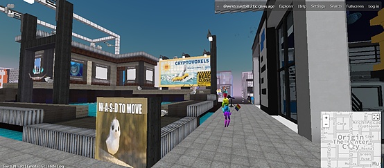 Cryptovoxels也是建立在以太坊上的虚拟世界,它在元宇宙世界中表现为像素化的城市街区,用户通过购买土地,在像素街区上建造商店和艺术画廊,开发和出售房地产。
