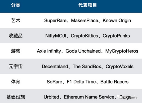 NFT 可应用于数字艺术作品,收藏品,游戏内物品,虚拟世界,体育竞技,时尚娱乐,身份验证,保险,基础设施如域名,实物资产数字化、电子门票或优惠券等应用场景。游戏和数字艺术可以说是 NFT 的两大主要应用场景。