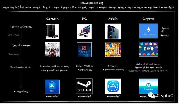 虽然游戏只是其中一个领域,但我相信它是最契合元宇宙、能承载的信息最丰富的的领域。在过去的20年里,围绕游戏形成的社区已经演变成了实体经济。游戏玩家根据可感知的地位和效用描述虚拟商品的价值。在此过程中,数字世界提供了独特的环境,研究其中的经济学时,能够跟踪(几乎)所有的投入和产出。它们让我们能够窥见本地数字商品的新兴价值,以及这种价值如何渗入现实世界,比如委内瑞拉的金农(gold farmer)。游戏告诉我们,受追捧的东西的稀缺性对于推动竞争和创造做市动力至关重要。它们向我们介绍超越地理界限的新兴文化,伴随丰富的历史、知识和传统。它们教会我们有效的分布式组织结构、治理和决策。在领导MMORPG中逐渐形成的大家族不仅向我们展示了秩序是不可能强加的,而且面向社区的提议是在三分钟热度的数字世界中长寿的关键驱动力。更重要的是,它们通过禀赋效应揭示了由此产生的防御能力:即使出现了一个值得平等或更多考虑的“更好”的世界,人类也宁愿坚持自己的世界。有了加密技术,一个团体将不必做出选择,相反,他们可以提出双方合作的提案。在(游戏)不断追求(玩家)持续参与的过程中,我们认识到,通胀会不惜一切代价推动经济增长,而许多游戏经济最终会走向破产。随着越来越多的价值在无限的元宇宙中数字化,稀缺性的保证肯定会很重要。电子游戏展示了人们对虚拟劳动力套利普遍的兴趣。纵观全球竞争环境,可以预期较贫穷国家将继续出口这些服务,并以此提供有用的做市商力量。大多数游戏经济体并没有真正在一个可识别的监管框架内运作,由此虚拟经济体表现得不受约束。通过对游戏社区的研究可以了解到,像自然进化一样,人们如何将新的加密技术悄悄地编织到未来的虚拟社区中。